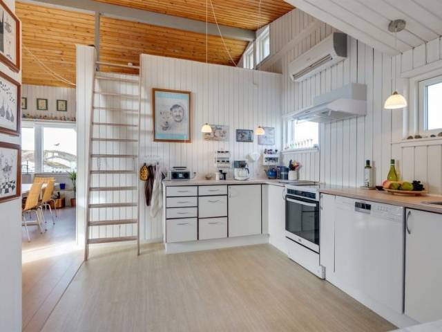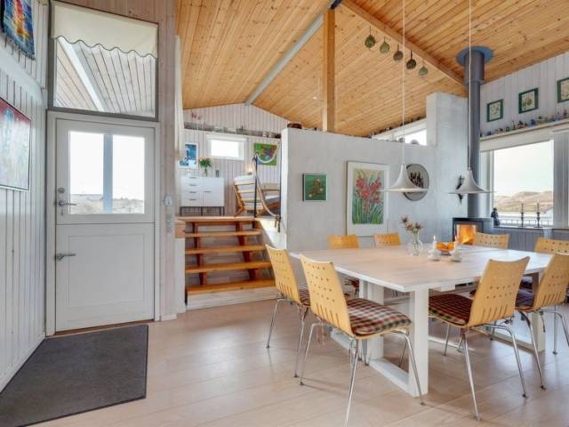 "Kulle" - 200m from the sea in NW Jutland", casa 3 estancias 100 m2. Vivienda adecuada para 6 adultos + 1 niño. Salón con TV y radio. 1 dorm. con 1 cama doble. 1 dorm. con 1 cama doble. 1 dorm. con 2 camas. Cocina (horno, lavavajillas, 4 placas de vitrocerámica, microondas, congelador). 2 ducha/WC. Vista al mar. El alojamiento dispone de: trona, cuna (extra). Internet (Wifi). A tener en cuenta: apartamento para no fumadores.