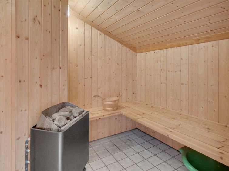 Casa unifamiliar del año 2006. A 450 m del mar. Privado: terreno en estado natural 1'390 m2. Terraza (25 m2), barbacoa, parque infantil (columpio). En el inmueble: sauna, lavadora, secadora. Aparcamiento junto a la casa. Tienda de comestibles 950 m. Campo de golf 4.8 km. El propietario no acepta grupos de adolescentes/jóvenes.