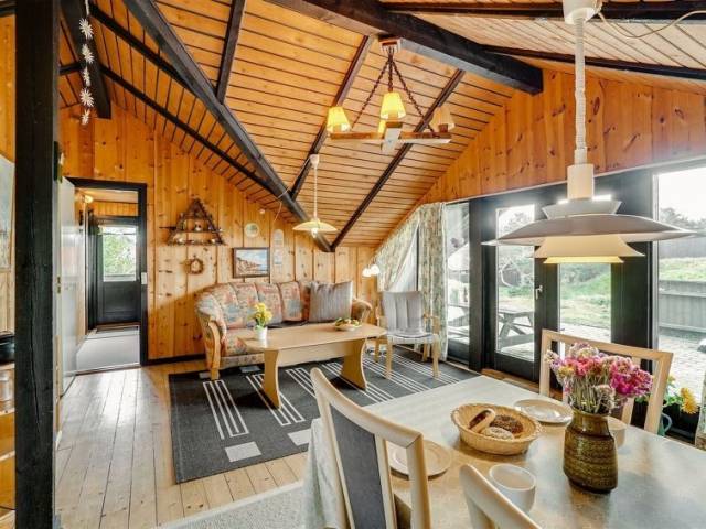"Delia" - 300m from the sea in Western Jutland", casa 2 estancias 56 m2. Vivienda adecuada para 4 adultos. Salón con TV, radio y CD. 1 dorm. con 1 cama doble. 1 dorm. con 1 cama y 1 x 1 literas. Cocina (4 fogones, horno). Ducha/WC. Terraza 14 m2, cubierta. El alojamiento dispone de: Internet (Wifi). A tener en cuenta: apartamento para no fumadores.