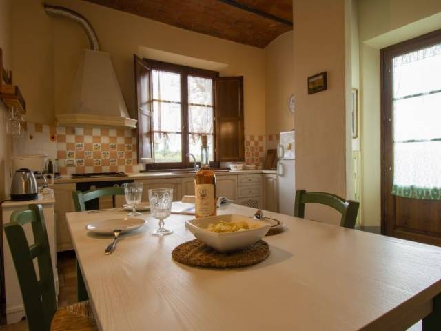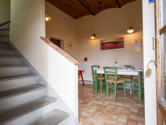 "Torraccia 1", apartamento de 3 estancias 70 m2 en 2 plantas. Con mobiliario rústico y agradable: cocina (horno, 4 fuegos, congelador, cafetera eléctrica) con mesa de comedor. Planta superior: salón con 1 sofá-cama doble y TV satélite. 1 dorm. doble. 1 dorm. con 1 x 2 literas. Ducha/bidet/WC. Calefacción de gas. Terraza-jardín. Muebles de terraza, trastero. Vista panorámica al paisaje. El alojamiento dispone de: mosquitera, trona, cuna. Internet (Wifi, gratis). A tener en cuenta: apartamento para no fumadores. 1 mascota / perro. Entrada privada.