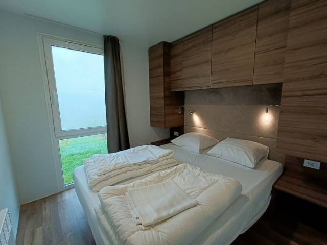 "Bellevue", bungalow 3 habitaciones 34 m2, en la planta baja. Con mobiliario confortable: entrada. Salón-comedor con pantalla plana. Salida a la terraza. 1 dorm. doble con 2 camas. 1 dorm. doble con 1 cama doble. Cocina abierta (lavavajillas, microondas, cafetera eléctrica) con mesa de comedor. Ducha/WC, WC separado. Calefacción, aire acondicionado. Terraza pequeña. Muebles de terraza. Vista al paisaje. El alojamiento dispone de: Internet (Wifi, gratis). Plaza de aparcamiento (1 coche) junto a la casa. A tener en cuenta: casa para no fumadores.
