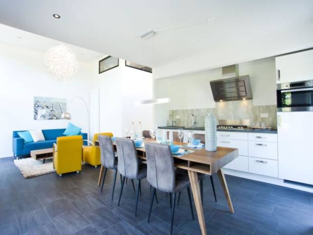 "Cube Elite", bungalow 4 habitaciones 70 m2 en 2 plantas. Con mobiliario confortable: salón-comedor abierto con mesa de comedor y pantalla plana. 2 dorm. dobles, cada habitación con 2 camas. Cocina abierta (4 fogones, horno, lavavajillas, hervidor de agua eléctrico, microondas, cafetera eléctrica). Ducha, WC separado. Planta superior: entre planta con 2 camas. Terraza. Muebles de terraza. El alojamiento dispone de: Internet (Wifi, gratis). Plaza de aparcamiento (1 coche) a 50 m. A tener en cuenta: casa para no fumadores.