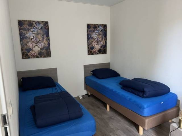 "L-Pavilion 6", bungalow 4 habitaciones 65 m2. Con mobiliario de buen gusto: salón-comedor con mesa de comedor y TV. Salida a la terraza. 3 dorm., cada habitación con 2 camas. Cocina abierta (4 fuegos, hervidor de agua eléctrico, congelador, cafetera eléctrica, microondas/grill). Ducha/WC. Calefacción. Terraza. Muebles de terraza. El alojamiento dispone de: trona, cuna. Internet (Wifi, gratis). Plaza de aparcamiento junto a la casa. A tener en cuenta: casa para no fumadores. El alojamiento es una casa tipo ejemplo o un apartamento tipo ejemplo. Solo se aceptan reservas para vacaciones. Se puede cargar un depóstio de 100 EUR por persona en destino.