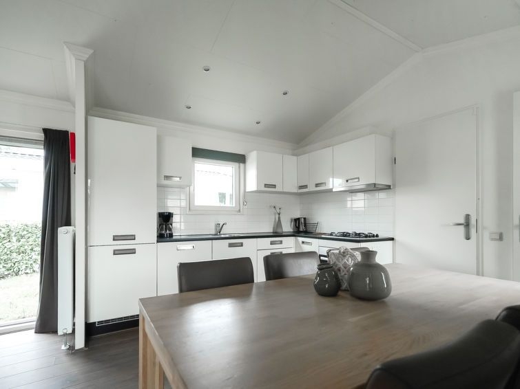 "Velthorst 6", chalet de madera 4 estancias 70 m2. Con mobiliario confortable: salón-comedor con mesa de comedor, pantalla plana y estufa eléctrica. Salida a la terraza. 3 dorm. dobles, cada habitación con 2 camas. Cocina abierta (4 fogones, lavavajillas, cafetera eléctrica, microondas/grill). Ducha/WC. Terraza. Muebles de terraza. El alojamiento dispone de: Internet (Wifi, gratis). Plaza de aparcamiento (1 coche) junto a la casa. A tener en cuenta: casa para no fumadores. Detector de humo.