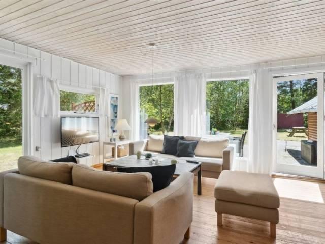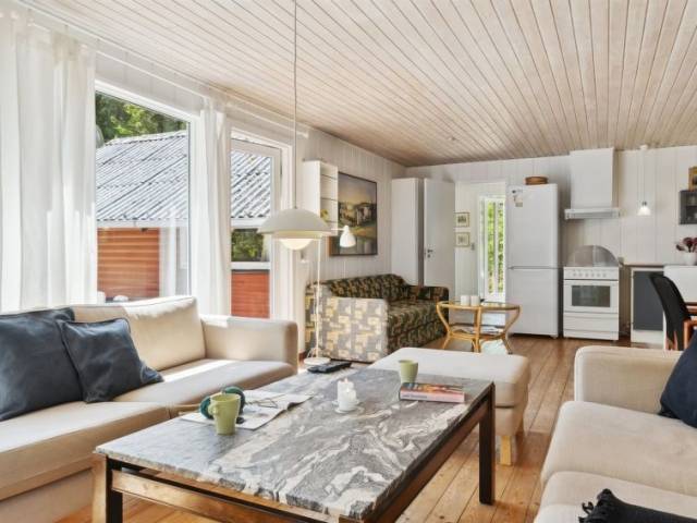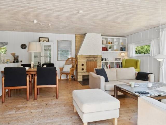 "Fernanda" - 1.3km from the sea in NE Jutland", casa 2 estancias 87 m2. Vivienda adecuada para 4 adultos. Salón con TV y CD. 1 dorm. con 1 cama doble. 1 dorm. con 1 cama doble. Cocina (horno, 4 placas de vitrocerámica, microondas, congelador). Ducha/WC. El alojamiento dispone de: trona, cuna (extra). Internet (Wifi). Permitido máximo 2 mascotas / perros.
