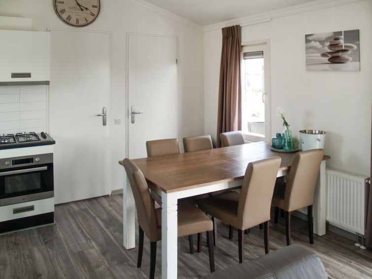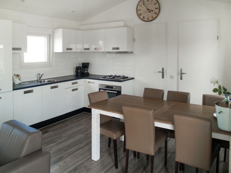 "Velthorst 6", chalet de madera 4 habitaciones 50 m2. Con mobiliario confortable: entrada. Salón-comedor con mesa de comedor y pantalla plana. Salida a la terraza. 3 dorm. dobles, cada habitación con 2 camas. Cocina abierta (4 fogones, lavavajillas, cafetera eléctrica, microondas/grill). Ducha/WC. Calefacción. Terraza. Muebles de terraza. El alojamiento dispone de: Internet (Wifi, gratis). Plaza de aparcamiento (1 coche) junto a la casa. A tener en cuenta: casa para no fumadores. Detector de humo. Es posible que en la propiedad haya una litera.