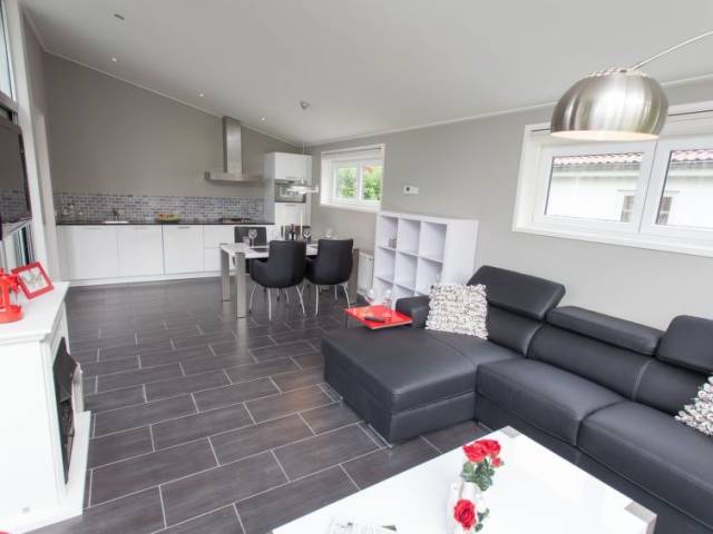 "Pavilion 6", chalet de madera 4 estancias 75 m2. Con mobiliario confortable: entrada con WC separado. Salón-comedor con mesa de comedor y pantalla plana. Salida a la terraza. 3 dorm., cada habitación con 2 camas. Cocina abierta (4 fogones, lavavajillas, cafetera eléctrica, microondas/grill). Ducha. Calefacción. Terraza. Muebles de terraza. El alojamiento dispone de: Internet (Wifi, gratis). Plaza de aparcamiento (1 coche) junto a la casa. A tener en cuenta: casa para no fumadores. Detector de humo.