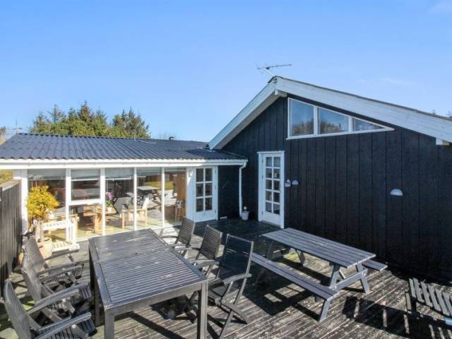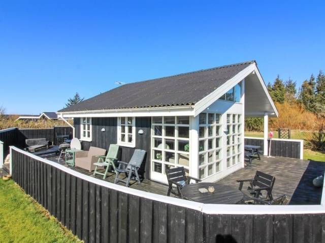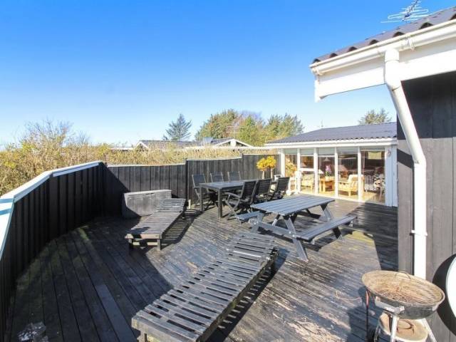 "Bjari" - 850m from the sea in NW Jutland", casa 2 estancias 70 m2. Vivienda adecuada para 6 adultos + 1 niño. Salón con TV, vídeo, radio y CD. 1 dorm. con 1 cama doble. Estudio 1 dorm. con con 1 cama doble. Cocina (horno, 4 placas de vitrocerámica, microondas). Ducha/WC. Terraza 5 m2, cubierta. El alojamiento dispone de: trona, cuna (extra). Internet (Wifi). Permitido máximo 1 mascota / perro.