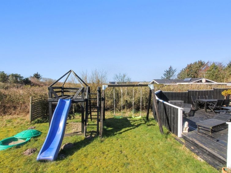 Casa unifamiliar del año 2003. A 850 m del mar. Privado: terreno en estado natural 1'500 m2. Terraza (45 m2), parque infantil (columpio), aparcamiento junto a la casa. Tienda de comestibles 400 m. El propietario no acepta grupos de adolescentes/jóvenes.