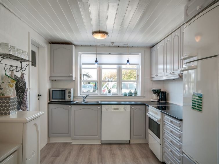 Casa unifamiliar del año 1937. A 400 m del mar. Privado: terreno en estado natural 445 m2. Terraza (55 m2). En el inmueble: lavadora, secadora. Tienda de comestibles 300 m. El propietario no acepta grupos de adolescentes/jóvenes. "Ellanora" - 400m from the sea in NW Jutland", casa 2 estancias 90 m2. Vivienda adecuada para 6 adultos. Salón con 1 sofá-cama doble, TV, radio y CD. 1 dorm. con 1 cama doble. 1 dorm. con 2 x 2 literas. Cocina (horno, lavavajillas, 4 placas de vitrocerámica, microondas, congelador). Ducha/WC. Terraza 15 m2, cubierta. El alojamiento dispone de: trona. Internet (Wifi). A tener en cuenta: apartamento para no fumadores.