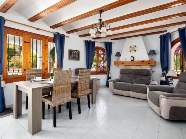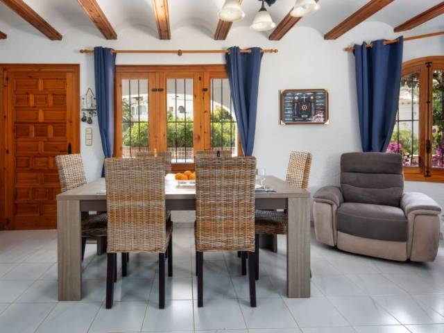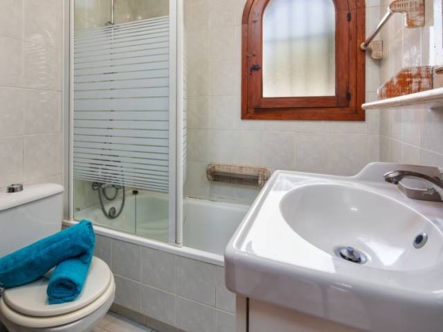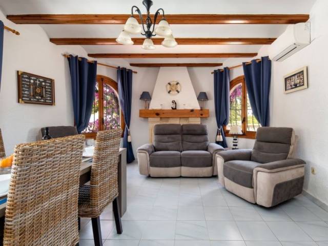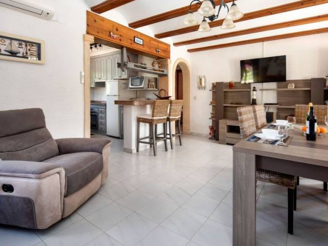 "Janine", casa 3 estancias 85 m2. Con mobiliario bonito y agradable: salón-comedor con chimenea, TV satélite, TV digital, equipo de música, aire acondicionado y bomba de calor, caliente. Salida a la terraza. 1 dorm. con 1 cama de matrimonio (160 cm, 200 cm de longitud), ducha/WC y ventilador. 1 dorm. con 1 cama de matrimonio (2 x 90 cm, 190 cm de longitud), ducha/WC. Cocina abierta (horno, lavavajillas, 4 placas de vitrocerámica, tostadora, hervidor de agua eléctrico, microondas, congelador, cafetera eléctrica). Baño/WC. Terraza grande. Muebles de terraza, barbacoa, tumbonas (4). El alojamiento dispone de: lavadora, plancha, mosquitera, cuna, secador de pelo. Internet (Wifi, gratis). Plaza de aparcamiento. VT-496673-A
