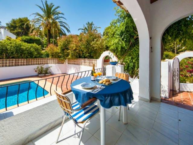 Casa "Janine", bonita, agradable. En el barrio de Entre Pinos, lugar tranquilo, soleado en un barrio residencial, a 4.5 km del mar, en una calle sin salida. Privado: jardín (vallado) con plantas y árboles, piscina (4 x 8 m, 80 - 210 cm de profundidad, Disponible por temporada: 01.Ene. - 31.Dic.) con escalera interior. Ducha exterior, muebles de jardín, caseta de barbacoa, aparcamiento (para 2 coches) en el mismo terreno. Tienda 4.5 km, supermercado 2 km, playa de arena "Arenal" 4.5 km. El propietario no acepta grupos de adolescentes/jóvenes.
