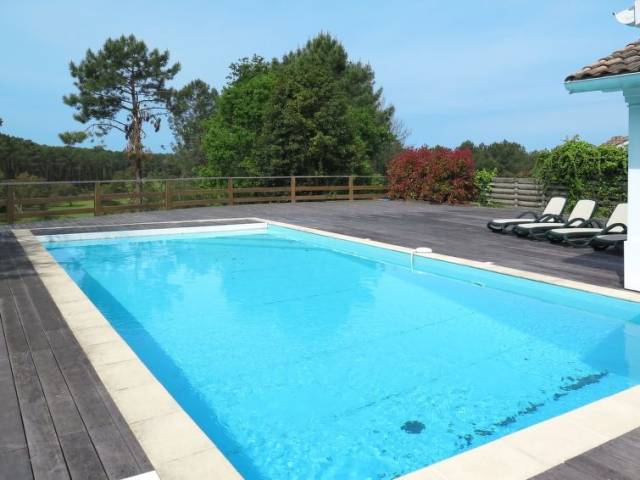 Resort "Club Royal Aquitaine", confortable. 30 casas en la residencia. A 2.5 km del centro de Moliets-Bourg, a 8 km del centro de Vieux Boucau, a 35 km del centro de Dax, a 800 m del mar. Privado: jardín 350 m2 con césped, piscina (7 x 4 m, Disponible por temporada: 15.May. - 21.Sep.). Terraza. En el complejo: recepción. Aparcamiento en el mismo terreno. Tienda 1.5 km, supermercado 7 km, estación de tren "Dax" 35 km, playa de arena 800 m. Puerto para yates 35 km, campo de golf (18 hoyos) 800 m. A tener en cuenta: La foto corresponde a una de las viviendas. Los alojamientos pueden diferir en la superficie habitable, la distribución de las estancias, el equipamiento y el mobiliario.