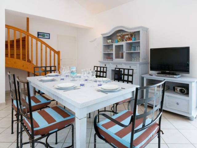 "Domaine de Vertmarines (SJM202)", casa 5 estancias 104 m2 en 2 plantas. Luminoso, con mobiliario bonito: salón-comedor grande con ventanal con mesa de comedor y alquiler de TV opcional. Salida a la terraza. 1 dorm. con 1 cama de matrimonio. 1 dorm. con 2 posibilidades para dormir. Cocina abierta (horno, lavavajillas, 4 placas de vitrocerámica, tostadora, hervidor de agua eléctrico, microondas, cafetera eléctrica). WC separado, baño o ducha. Planta superior: 2 dorm., abuhardillados, cada habitación con 2 posibilidades para dormir. Ducha/WC. Calefacción eléctrica. Suelo de parquet. Terraza. Muebles de terraza. Vista al jardín. El alojamiento dispone de: lavadora. Plaza de aparcamiento, garaje. A tener en cuenta: casa para no fumadores.