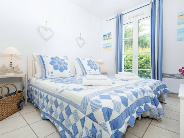 Resort "Domaine de Vertmarines", bonito, agradable. 98 casas en el complejo. A 2 km del centro de St. Jean-de-Monts, en la periferia, a 50 km del centro de Les Sables d'Olonne, a 3.5 km del mar. Comunitario: terreno 6 ha (vallado) con plantas y árboles. Privado: jardín 350 m2 (no está vallado) con pradera, piscina (8 x 4 m, Disponible por temporada: 15.May. - 15.Sep.). En el complejo: recepción, Wifi. Servicio a domicilio de panecillos (extra). Tienda 2 km, playa de arena "Les Demoiselles" 3.5 km. A tener en cuenta: La foto corresponde a una de las viviendas. Los alojamientos pueden diferir en la superficie habitable, la distribución de las estancias, el equipamiento y el mobiliario. Wifi (gratis) sólo en la recepción.