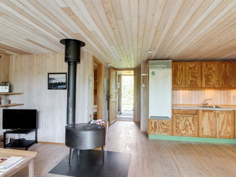 "Jaane" - 650m to the inlet in Western Jutland", casa 2 estancias 55 m2. Vivienda adecuada para 4 adultos + 1 niño. Salón con TV, radio y CD. 1 dorm. con 2 x 2 literas. 1 dorm. con 1 cama doble. Cocina (4 fogones, horno, congelador). Ducha/WC. El alojamiento dispone de: trona, cuna (extra). Internet (Wifi).