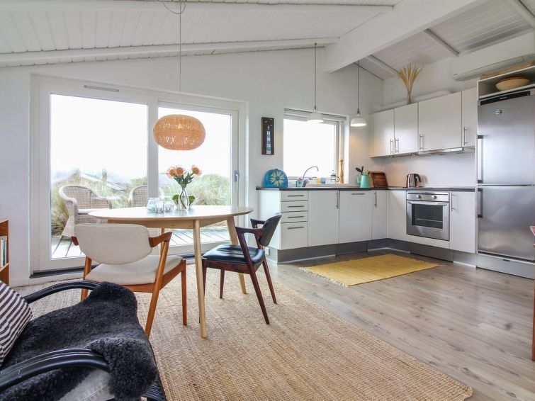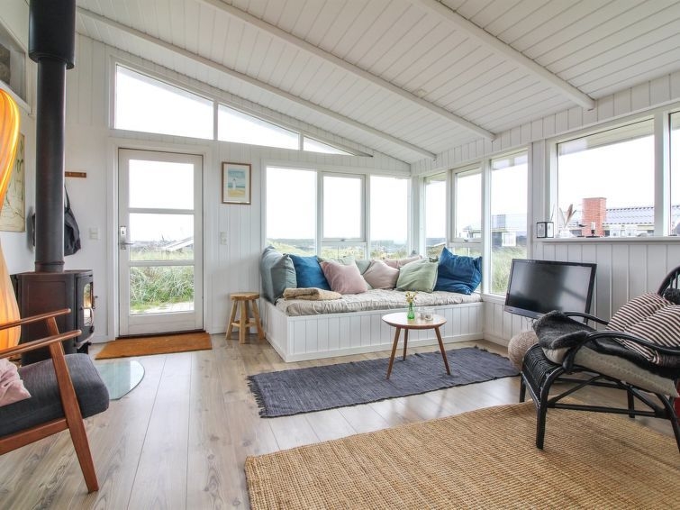 "Anissa" - 100m from the sea in NW Jutland", casa estudio 52 m2. Vivienda adecuada para 2 adultos. Salón con TV y radio. 1 dorm. con 1 cama doble. 1 dorm.. Cocina (horno, lavavajillas, 4 placas de vitrocerámica, congelador). Ducha/WC. Vista al mar. El alojamiento dispone de: Internet (Wifi). Permitido máximo 1 mascota / perro.