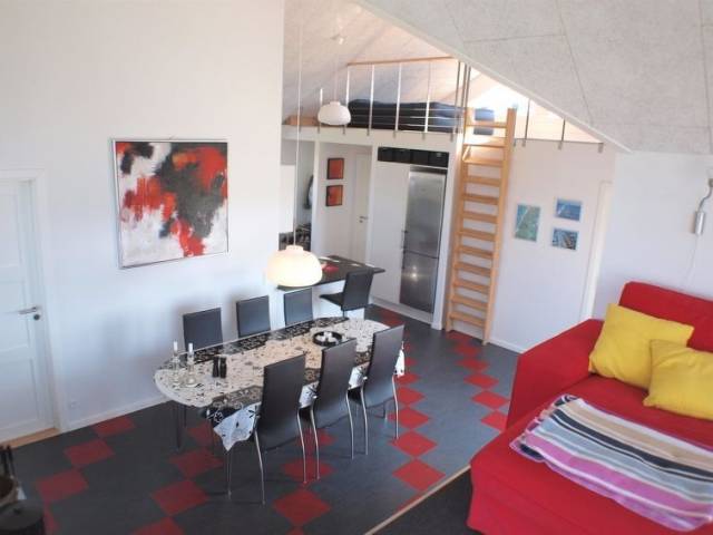 "Gynther" - 150m from the sea in NW Jutland", casa 3 estancias 100 m2. Vivienda adecuada para 5 adultos. Salón con TV, radio y CD. 1 dorm. con 1 cama doble. 1 dorm. con 1 cama doble. 1 dorm. con 1 cama. Cocina (horno, lavavajillas, 4 placas de vitrocerámica, congelador). 2 ducha/WC. Vista al mar. A tener en cuenta: apartamento para no fumadores.