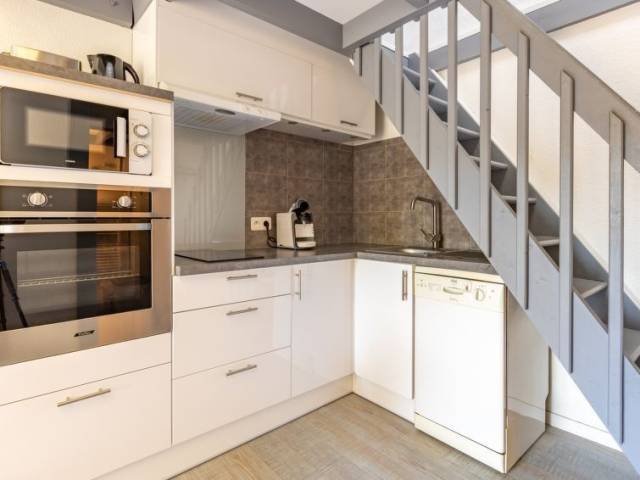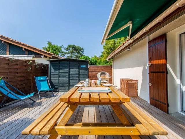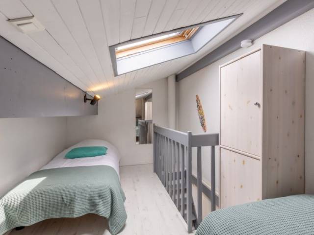 Casa adosada 2 estancias 30 m2 en 2 plantas. Vivienda adecuada para 2 adultos + 2 niños. Con mobiliario confortable y bonito: salón-comedor con TV (pantalla plana), aire acondicionado. Salida a la terraza. 1 dorm. con 1 cama de matrimonio (140 cm, 190 cm de longitud). Cocina abierta (lavavajillas, 2 placas de vitrocerámica, tostadora, hervidor de agua eléctrico, microondas, cafetera eléctrica). Ducha, WC separado. Calefacción eléctrica. Planta superior: (escalera empinada) altillo abuhardillado, abierto con 2 camas (80 cm, 190 cm de longitud). Terraza grande 25 m2, orientación oeste. Muebles de terraza, barbacoa. El alojamiento dispone de: lavadora, plancha, secador de pelo. Internet (Wifi, gratis). A tener en cuenta: adecuado para familias. Apartamento para no fumadores. Detector de humo. 40065000726OW