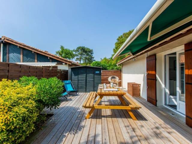 Capbreton a 2 km de Hossegor: La residencia "Paradise Océan" es un complejo de 180 casas en hilera. Residencia "Paradise Océan". En la localidad, a 800 m del centro, a 1.2 km del mar, a 8 km de un lago, a 1.2 km de la playa. Comunitario: piscina (8 x 15 m, 160 cm de profundidad, Disponible por temporada: 15.Jul. - 15.Sep.). Aparcamiento (número limitado) junto a la casa. Tienda, restaurante 800 m, playa de arena 1.2 km. Campo de golf (18 hoyos) 8 km. A tener en cuenta: La foto corresponde a una de las viviendas. Se pueden reservar alojamientos adicionales.