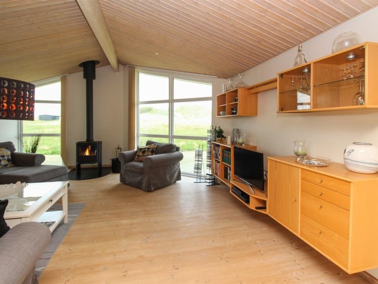 "Hilka" - 75m from the sea in NW Jutland", casa 3 estancias 102 m2. Vivienda adecuada para 6 adultos. Salón con TV y radio. 1 dorm. con 1 cama doble. Estudio 1 dorm. con con 1 x 1 literas, 1 cama doble. Cocina (horno, lavavajillas, 4 placas de vitrocerámica, microondas, congelador). Ducha/WC. Terraza 15 m2, cubierta. El alojamiento dispone de: trona. Internet (Wifi). A tener en cuenta: apartamento para no fumadores. Permitido máximo 2 mascotas / perros.