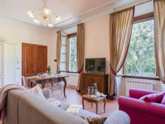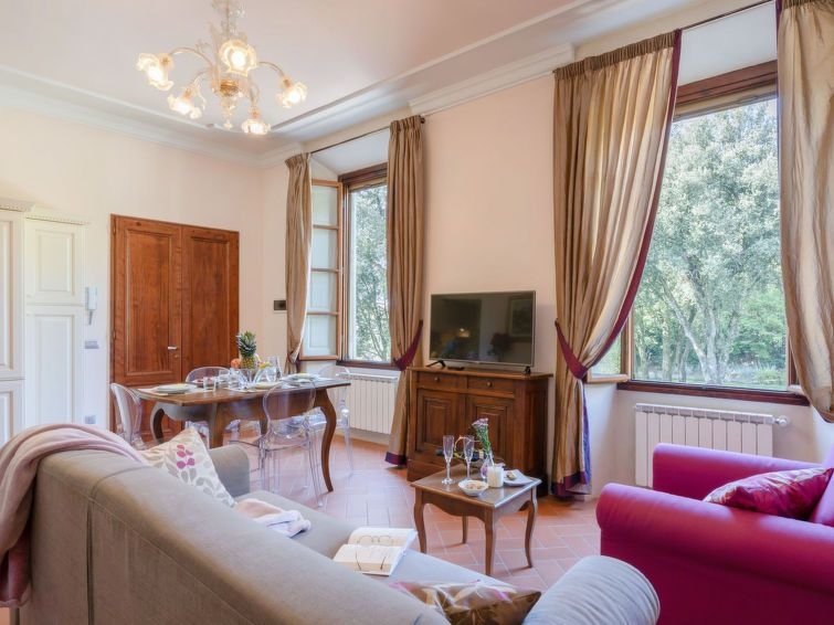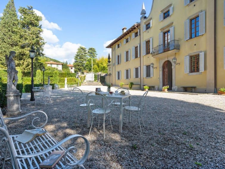 Villa Beatrice situada en una zona montañosa a media hora en coche y tren desde Florencia (la estación de tren está a 1600 metros de la propiedad) a 10 minutos del circuito de Mugello y del Golf %26 Country Club “Poggio dei Medici”, un excelente punto de partida para visitar los alrededores de Mugello y las ciudades de arte de la Toscana. La villa, que data de 1700 y recientemente renovada, está distribuida en varios niveles e incluye 6 unidades autónomas para un total de 26 personas. El mobiliario está cuidado al detalle, garantizando el ambiente y la autenticidad de una villa del siglo XVIII, con muebles elegantes y elementos antiguos. La estructura se presta muy bien para alquilarse como un solo ambiente, ya que en la planta baja hay un gran comedor donde todos pueden comer cómodamente juntos, mientras que en el primer piso hay una cocina profesional común totalmente equipada. Villa "Beatrice", 600 m s.n. m., individual del año 1700, reformada en 2018. A 6.7 km del centro de Borgo San Lorenzo, a 12.5 km del centro de Vicchio, a 38 km del centro de Firenze, lugar aislado, tranquilo, soleado en una colina. Privado: parque (vallada), piscina (6 x 11 m, 150 cm de profundidad, Disponible por temporada: 18.May. - 28.Sep.). Muebles de jardín, barbacoa. Posibilidad de pagar la calefacción en plaza, calefacción disponible desde el 01.Nov. - 07.Abr.. Posibilidad de ayuda doméstica diaria (extra). Posibilidad de cocinero (extra). Aparcamiento en el mismo terreno. Tienda 6 km, supermercado 15 km, restaurante 1.2 km, estación de tren "Borgo San Lorenzo" 6 km, lago "Bilancino" 20 km. Campo de golf (18 hoyos) 8 km. Atracciones en los alrededores: Autodromo del Mugello 11 km, Scarperia 17 km, Marradi 27 km, Firenzuola 30 km, Fiesole 31 km. A tener en cuenta: adecuado para familias. Adecuado para eventos. "Beatrice", villa 20 estancias 500 m2 en 3 plantas, en la planta baja. Reformada en 2018, con mobiliario funcional y de buen gusto: comedor grande. Planta superior: grande cocina (6 fogones, horno, lavavajillas, tostadora, microondas, congelador, cafetera eléctrica). Planta superior 2: salón-comedor con rincón cocina y TV satélite. 1 dorm. doble con ducha/bidet/WC. 1 dorm. con 2 camas y baño/bidet/WC. Salón-comedor con chimenea, rincón cocina y TV satélite. 1 dorm. doble con baño/bidet/WC y bañera de hidromasaje. 1 dorm. con 2 camas y ducha/bidet/WC. Planta superior 3: salón-comedor con rincón cocina y TV satélite. 1 dorm. doble con WC separado. 1 dorm. con 2 camas y ducha/bidet/WC. Altillo con 1 cama doble y ducha/bidet/WC. Salón-comedor con rincón cocina y TV satélite. 1 dorm. doble con baño/bidet/WC y bañera de hidromasaje. 1 dorm. doble con ducha/bidet/WC. Altillo con 2 camas. Salón-comedor con rincón cocina y TV satélite. 1 dorm. doble con baño/bidet/WC y bañera de hidromasaje. Salón-comedor con rincón cocina y TV satélite. 1 dorm. doble con WC separado. Altillo con 2 camas y ducha/bidet/WC. 2 ducha/bidet/WC. Calefacción (extra). El alojamiento dispone de: lavadora, plancha, mosquitera, secador de pelo. Internet (Wifi, gratis). La Villa dividida en seis apartamentos que se comunican internamente. Si el número de personas que ocupan la casa vacacional fuera inferior al máximo posible, una de las plantas no estará disponible.