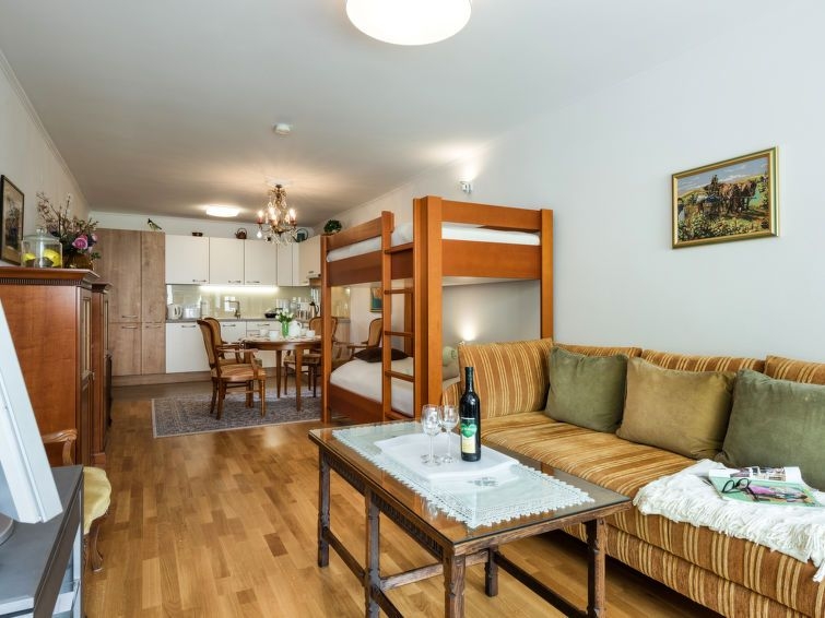 "Maria", apartamento de 2 estancias 54 m2 en el 2° piso. Luminoso, parcialmente en 2017, con mobiliario muy de buen gusto: entrada. 1 dorm. doble con 1 cama doble. Salida al balcón. Salón-dormitorio con 1 sofá-cama y 1 x 2 literas (90 cm, 200 cm de longitud), TV cable (pantalla plana), vídeo, radio y CD. Salida al balcón. Cocina abierta (horno, lavavajillas, 4 placas de vitrocerámica, tostadora, hervidor de agua eléctrico, microondas, cafetera eléctrica) con mesa de comedor. Ducha/WC. Suelo de parquet. Balcón grande 9 m2. Muebles de balcón. Vista muy bonita a las montañas. El alojamiento dispone de: secador de pelo. Internet (Wifi, gratis). Garaje n. 19 junto a la casa. A tener en cuenta: adecuado para familias. Apartamento para no fumadores. Detector de humo, extintores. 50403-000272-2020
