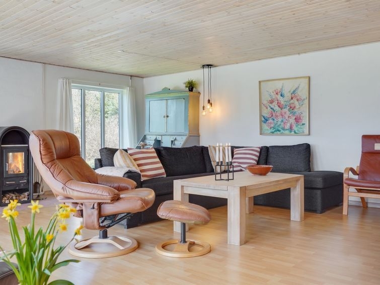 "Yorick" - 1km from the sea in NE Jutland", casa 4 estancias 118 m2. Vivienda adecuada para 7 adultos. Salón con TV. 1 dorm. con 1 cama doble. 1 dorm. con 1 cama doble. Estudio 1 dorm. con con 1 cama. Cocina (horno, lavavajillas, 4 placas de vitrocerámica, microondas, congelador). Ducha/WC. Invernadero. El alojamiento dispone de: trona, cuna (extra). Internet (Wifi). A tener en cuenta: apartamento para no fumadores.