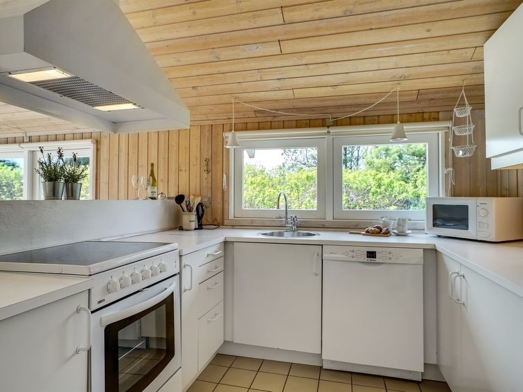 "Ømod" - 300m from the sea in NW Jutland", casa 3 estancias 71 m2. Vivienda adecuada para 6 adultos. Salón con TV, radio y CD. 1 dorm. con 1 cama doble. 1 dorm. con 1 cama doble. 1 dorm. con 2 x 2 literas. Cocina (horno, lavavajillas, 4 placas de vitrocerámica, microondas, congelador). Ducha/WC. Terraza 8 m2, cubierta. El alojamiento dispone de: trona. Internet (Wifi). A tener en cuenta: apartamento para no fumadores. Permitido máximo 1 mascota / perro.