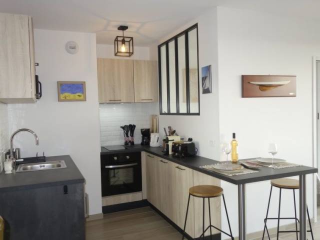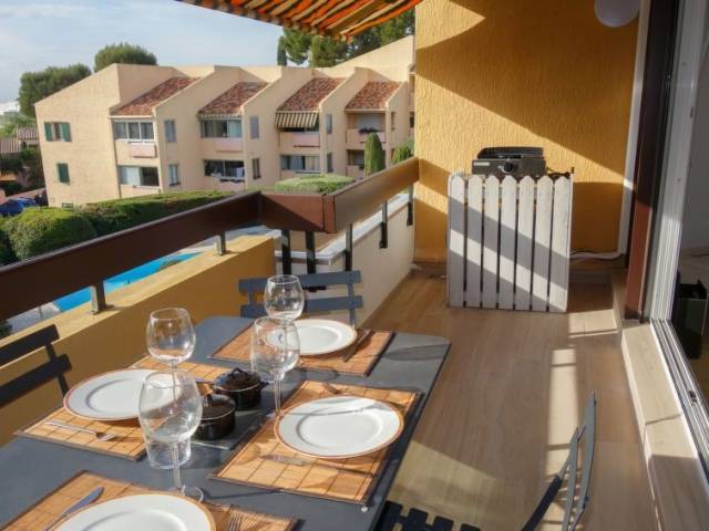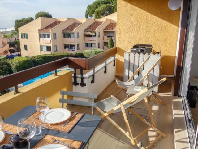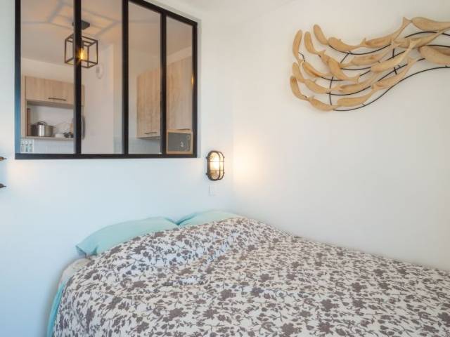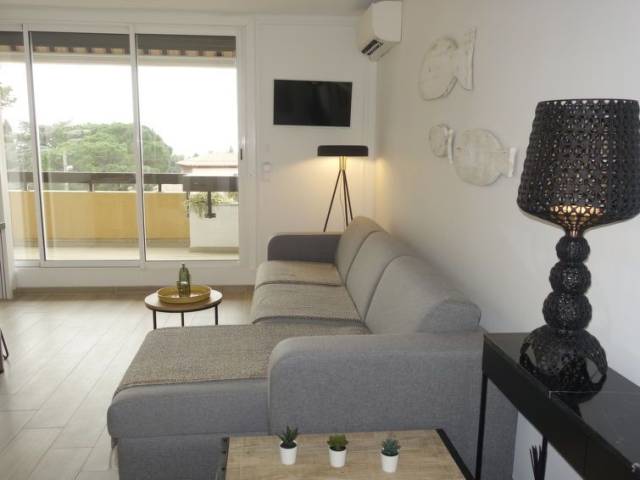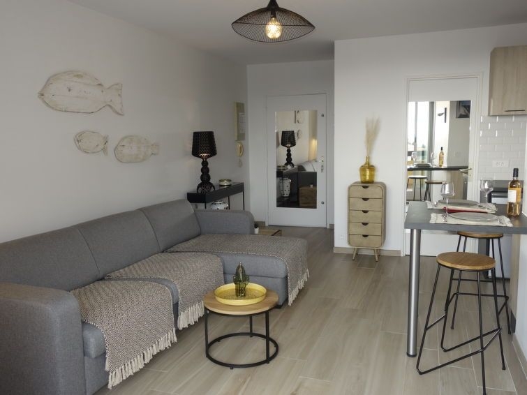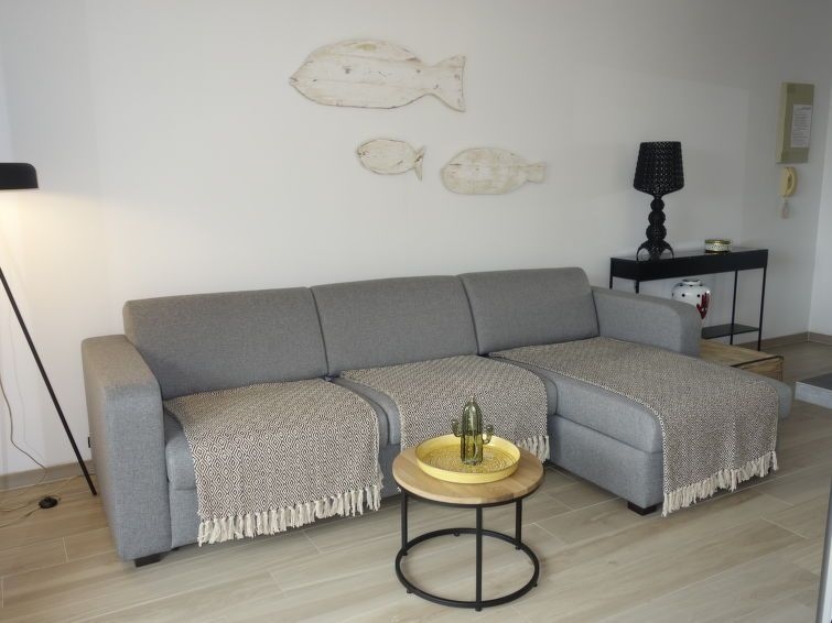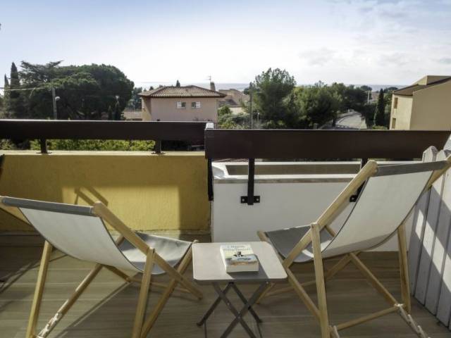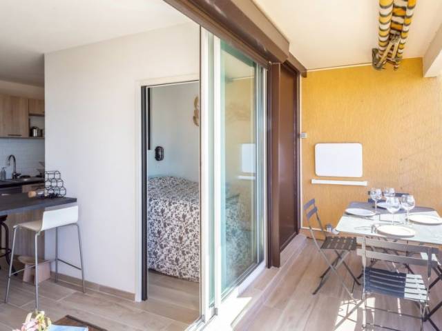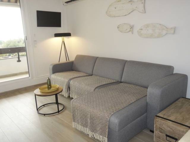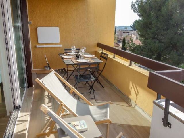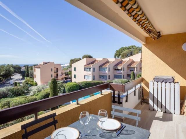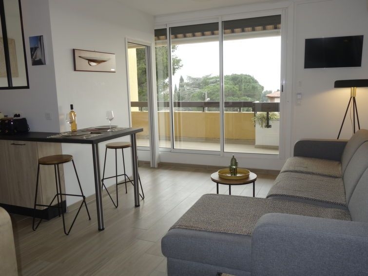 Apartamento de 2 estancias 30 m2 en el 2° piso. Luminoso, completamente reformado en 2019, con mobiliario confortable y bonito: salón-comedor con 1 sofá-cama doble (1 x 140 cm, 190 cm de longitud), TV (pantalla plana), aire acondicionado. Salida a la terraza. 1 dorm., pequeño con 1 cama de matrimonio (140 cm, 190 cm de longitud). Salida a la terraza. Rincón-cocina (horno, lavavajillas, 2 placas de vitrocerámica, tostadora, hervidor de agua eléctrico, cafetera eléctrica, Cápsulas de café (Nespresso) extra). Ducha/WC. Aire caliente. Terraza 10 m2, cubierta, orientación sur. Muebles de terraza, barbacoa eléctica. Vista lejana al mar. El alojamiento dispone de: lavadora. Internet (Wifi, extra). Plaza de aparcamiento (1 coche). A tener en cuenta: detector de humo. 83009 000007 2U