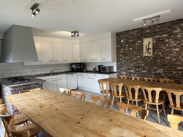 "Geschakelde 25 persoons", casa 13 estancias 210 m2 en 2 plantas. Con mobiliario funcional: entrada. Salón-comedor con mesa de comedor, TV y estufa de lena. Salida a la terraza. 3 dorm. dobles, cada habitación con 2 camas. Cocina abierta (8 fogones, lavavajillas, hervidor de agua eléctrico, cafetera eléctrica, microondas/grill). 2 duchas, ducha/WC, WC separado. Calefacción. Planta superior: 8 dorm. dobles, cada habitación con 2 camas. 1 dorm. con 3 camas. 2 ducha/WC. Terraza. Muebles de terraza. El alojamiento dispone de: Internet (Wifi, gratis). A tener en cuenta: permitido máximo 2 mascotas / perros. Detector de humo.