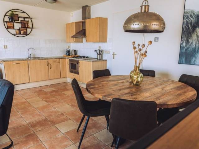 "Westergeest", apartamento de 4 estancias 90 m2, en la planta baja. Con mobiliario funcional: entrada con WC separado. Salón-comedor con rincón-comedor, TV y DVD. 1 dorm. con 2 camas. 2 dorm., cada habitación con 1 x 2 literas. Sala para equipaje. Cocina abierta (4 fogones, lavavajillas, cafetera eléctrica, microondas/grill). Ducha. Calefacción. Terraza. Muebles de terraza. El alojamiento dispone de: lavadora. Internet (Wifi, gratis). Plaza de aparcamiento junto a la casa. A tener en cuenta: casa para no fumadores. Permitido máximo 2 mascotas / perros. Detector de humo.