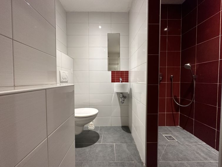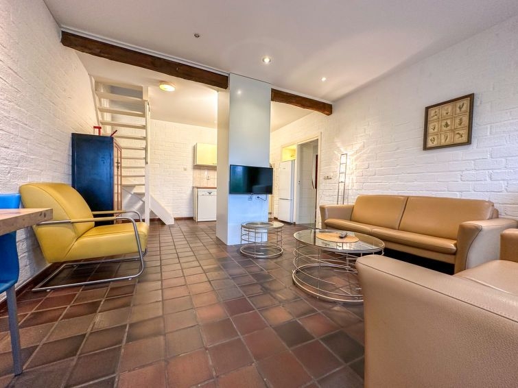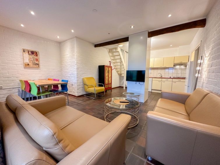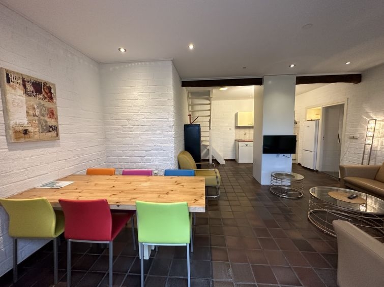 "Geschakelde 6 persoons", casa 4 estancias 60 m2 en 2 plantas. Con mobiliario confortable: entrada. Salón-comedor con mesa de comedor y pantalla plana. Salida a la terraza. Cocina abierta (4 fogones, horno, lavavajillas, hervidor de agua eléctrico, cafetera eléctrica). Ducha/WC. Calefacción. Planta superior: 3 dorm. dobles, cada habitación con 2 camas. Ducha/WC, Sauna. Terraza. Muebles de terraza. El alojamiento dispone de: Internet (Wifi, gratis). A tener en cuenta: permitido máximo 2 mascotas / perros. Detector de humo.