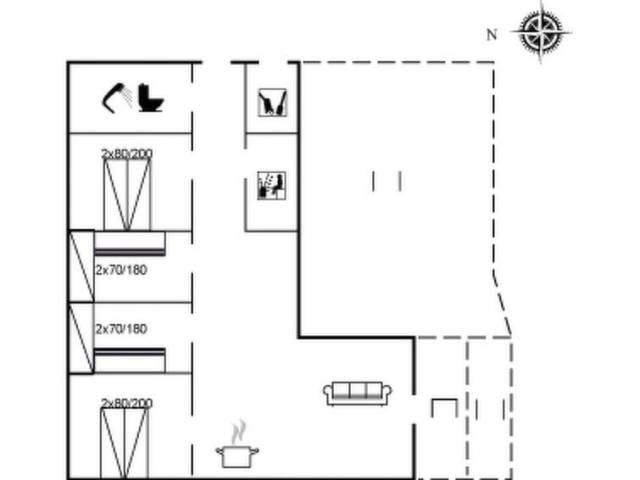 Casa unifamiliar del año 1986. A 950 m del mar. Privado: terreno en estado natural 1'759 m2. Terraza (45 m2), parque infantil. En el inmueble: sauna, lavadora. Tienda de comestibles 250 m. El propietario no acepta grupos de adolescentes/jóvenes. "Junette" - 950m from the sea in NW Jutland", casa 4 estancias 88 m2. Vivienda adecuada para 8 adultos. Salón con TV. 1 dorm. con 2 x 2 literas. 1 dorm. con 1 cama doble. 1 dorm. con 1 cama doble. 1 dorm. con 2 x 2 literas. Cocina (horno, lavavajillas, 4 placas de vitrocerámica). Ducha/WC. Terraza 4 m2, cubierta. El alojamiento dispone de: Internet (Wifi). A tener en cuenta: apartamento para no fumadores.