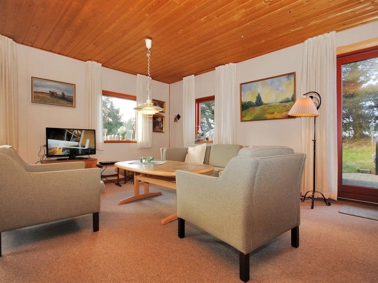 Casa unifamiliar del año 1965. A 2 km del mar. Privado: terreno en estado natural 1'000 m2. Terraza (30 m2). En el inmueble: lavadora. Aparcamiento junto a la casa. Tienda de comestibles 500 m. "Palle" - 2km from the sea in NW Jutland", casa 3 estancias 115 m2. Vivienda adecuada para 6 adultos. Salón con TV y radio. 1 dorm. con 1 cama doble. 1 dorm. con 2 camas. 1 dorm. con 2 x 2 literas. Cocina (horno, lavavajillas, 4 placas de vitrocerámica, microondas, congelador). Ducha/WC. El alojamiento dispone de: trona. Internet (Wifi). A tener en cuenta: apartamento para no fumadores. Permitido máximo 1 mascota / perro.