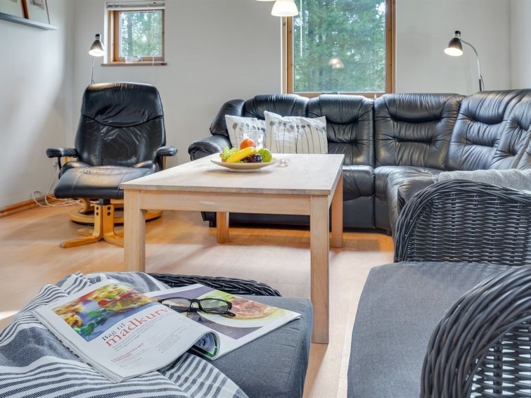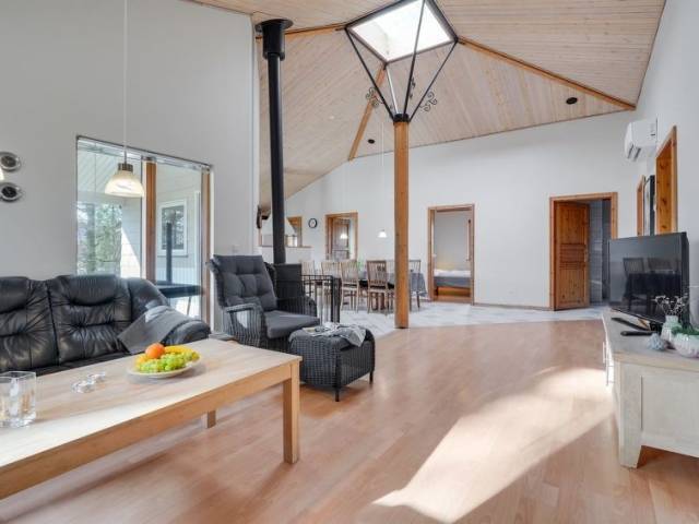 Casa unifamiliar del año 2001. A 29 km del mar. Privado: terreno en estado natural 877 m2. Terraza (8 m2). En el inmueble: sauna, lavadora, secadora. Aparcamiento junto a la casa. Tienda de comestibles 2.5 km. El propietario no acepta grupos de adolescentes/jóvenes.