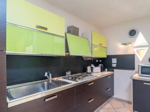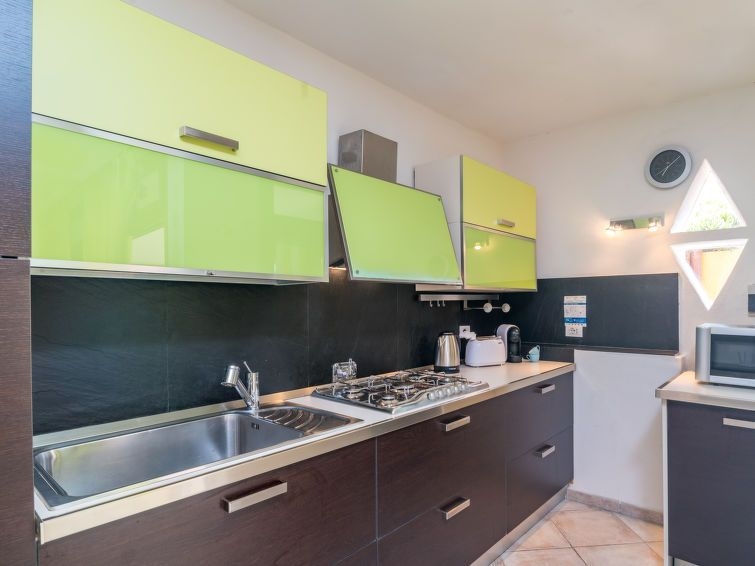 "Robby", casa 4 estancias 100 m2, en la planta baja. Con mobiliario confortable y agradable: salón-dormitorio con TV digital y aire acondicionado. Salida a la terraza. 1 dorm. doble, sin ventanas con aire acondicionado. 1 dorm. doble, abierto, sin ventanas con ducha/WC. Habitación de paso con 1 sofá-cama doble. Salida a la terraza. Grande rincón-cocina (horno, lavavajillas, 4 fuegos, tostadora, hervidor de agua eléctrico, microondas, cafetera eléctrica). Ducha/bidet/WC. Terraza cubierta terraza. Muebles de terraza. Vista parcial al mar y al paisaje. El alojamiento dispone de: lavadora, trona, cuna (extra). Internet (Wifi, gratis). A tener en cuenta: casa para no fumadores. 1 mascota / perro. Entrada privada. Si el número de personas que ocupan la casa vacacional fuera inferior al máximo posible, no todos los dormitorios estarán disponibles. IUN:Q8553