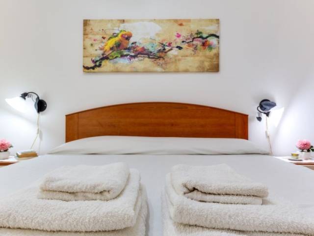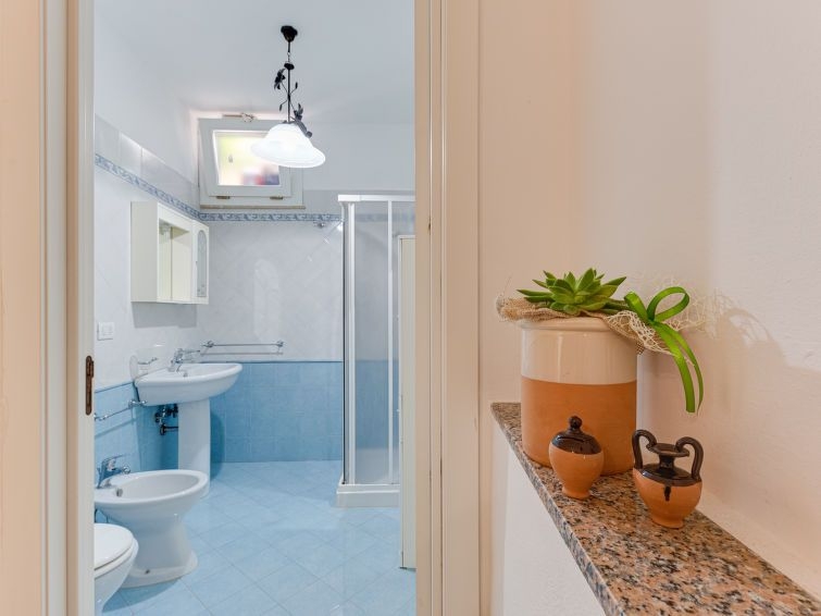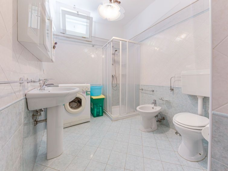 Apartamento de 3 estancias 100 m2, en la planta baja. Luminoso, con mobiliario confortable y bonito: 1 dorm. doble, ventana al salón. 1 dorm. con 1 x 2 literas, ducha/bidet/WC. Salón-comedor grande con mesa de comedor y TV. Salida a la terraza. Rincón-cocina (4 fogones, horno, congelador). Ducha/bidet/WC. Aire acondicionado, aire caliente (extra). Calefacción disponible desde el 15.11. al 31.03. Terraza 10 m2. Muebles de terraza. Vista panorámica muy bonita al mar y a la localidad. El alojamiento dispone de: lavadora. Adecuado para familias.