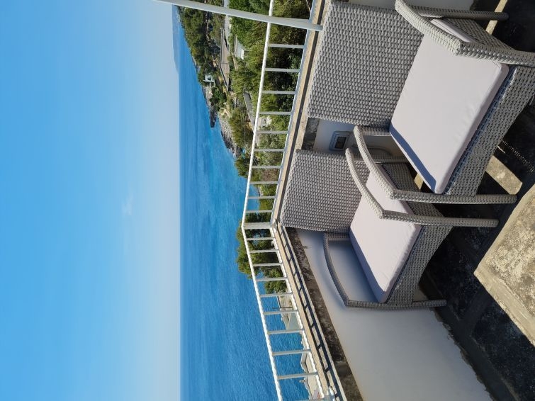 Marina di Marittima: Casa adosada "Sun & Sea terrace", bonita, rodeada de árboles. A 400 m del centro de Castro Marina, a 3 km del centro de Castro, lugar soleado en una pendiente, a 150 m del mar, a 150 m de la playa, cruzando la calle. Comunitario: jardín plantas y árboles. En el inmueble: aire acondicionado, alarma. Cambio de sábanas 1 vez por semana (suplemento extra). Cambio de toallas diaria (suplemento extra). Posibilidad de limpieza diaria (extra). Acceso por escaleras (90 escalones) hasta la casa. Posibilidad de aparcamiento en la calle. Tienda de comestibles 600 m, supermercado 2 km, restaurante 800 m, bar 500 m, parada de autobús 100 m, estación de tren 8 km, playa de gravilla 100 m, playa rocosa 600 m. Atracciones en los alrededores: Cala dell'Acquiaviva 300 m, Santa Cesarea Terme 7 km, Otranto 25 km, Leuca 25 km, Grotta Zinzulusa 3 km. A tener en cuenta: la propiedad con ref: 300.1 - 300.2 está situada en la misma parcela. Apartamento de 2 estancias 50 m2 en el 1° piso. Luminoso, con mobiliario confortable y bonito: 1 dorm. doble. Salón-comedor con 1 sofá-cama doble y mesa de comedor. Salida a la terraza. Rincón-cocina (4 fogones, horno, congelador) con TV. Ducha/bidet/WC. Aire acondicionado, aire caliente (extra). Calefacción disponible desde el 15.11. al 31.03. Terraza 50 m2. Muebles de terraza, tumbonas. Vista panorámica muy bonita al mar, al jardín y a la localidad. Adecuado para familias.