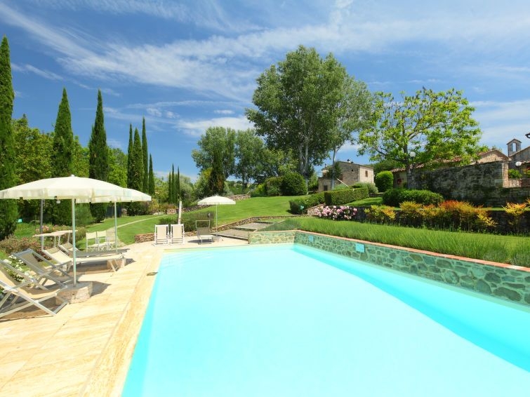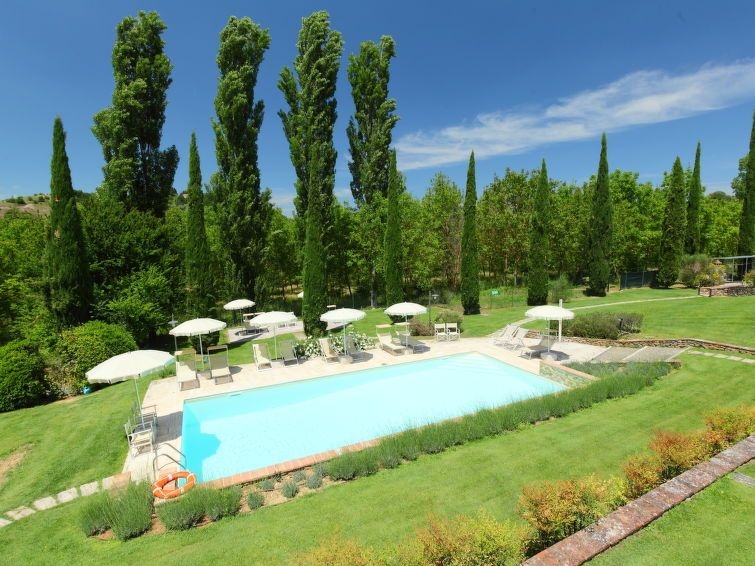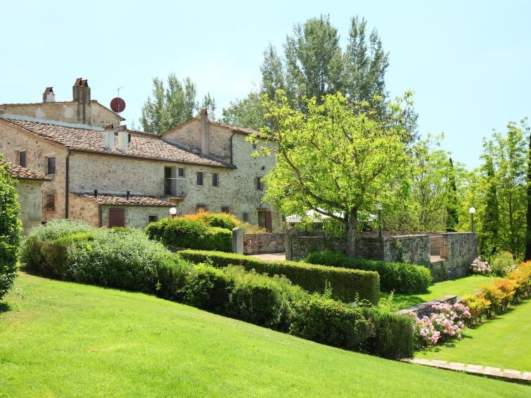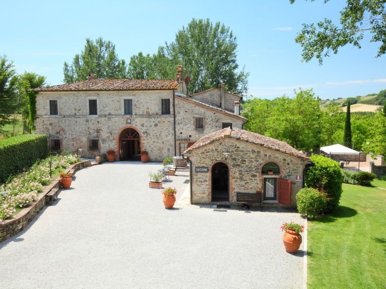 Casa de campo "Rapolano", reformada, rodeada de campos. A 1.5 km del centro de Rapolano Terme, a 25 km del centro de Siena, a 85 km del centro de Firenze. Comunitario: terreno (vallado) con césped y flores, piscina vallada (6 x 12 m, 90 - 180 cm de profundidad, Disponible por temporada: 15.May. - 01.Oct.). Tenis de mesa, terraza-jardín, terraza, muebles de jardín, barbacoa. En el inmueble: recepción, acceso a internet, Wifi, calefacción central, lavadora (uso comunitario, extra), posibilidad de pagar la calefacción en plaza, calefacción disponible desde el 01.Nov. - 15.Abr.. Aparcamiento junto a la casa. Supermercado 2 km, restaurante 2 km, estación de tren "Rapolano Terme" 2 km, piscina termal 2 km. A tener en cuenta: calle principal en la proximidad. Se pueden reservar alojamientos adicionales. "San Biagio", apartamento de 3 estancias 70 m2 en el 1° piso. Con mobiliario confortable y de buen gusto: salón abierto grande con 1 sofá-cama, chimenea y TV satélite. 1 dorm. doble. 1 dorm. con 2 camas. Rincón-cocina (4 fogones, horno, lavavajillas, congelador, cafetera eléctrica). 2 ducha/bidet/WC. El alojamiento dispone de: caja fuerte.