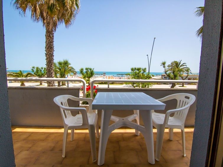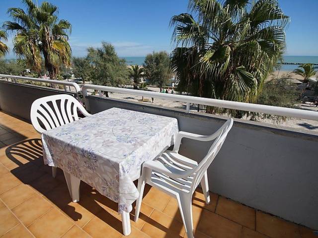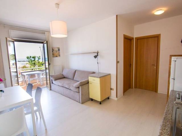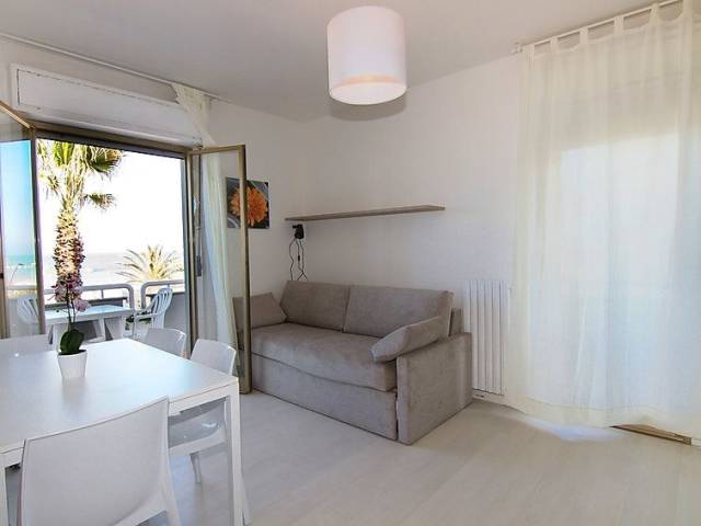 Apartamento de 2 estancias 35 m2, en planta superior. Con mobiliario confortable y moderno: salón-comedor con 1 sofá-cama, 1 cama-nido y TV. Salida al balcón. 1 dorm. doble. Rincón-cocina (4 fogones). Ducha/bidet/WC. Calefacción, aire acondicionado. Calefacción disponible desde el 01.11. al 15.04. Balcón 15 m2. Muebles de balcón. Vista bonita al mar. El alojamiento dispone de: lavadora, caja fuerte. Internet (Wifi, gratis). Garaje (1 coche). A tener en cuenta: permitido máximo 1 mascota pequeña / perro. Sin ascensor.