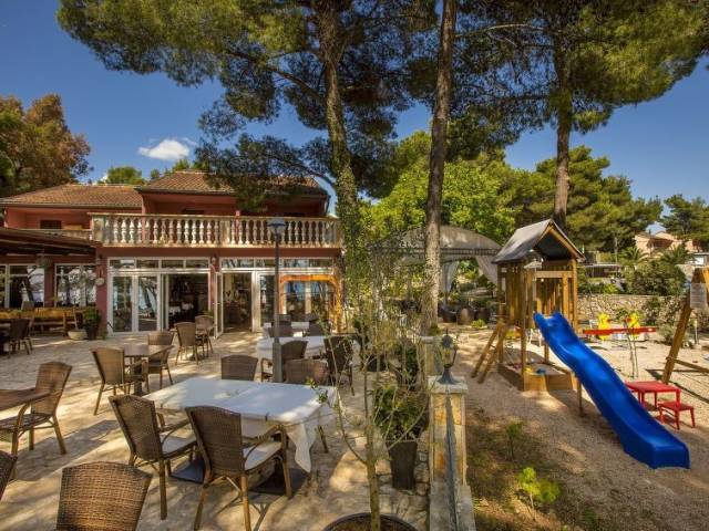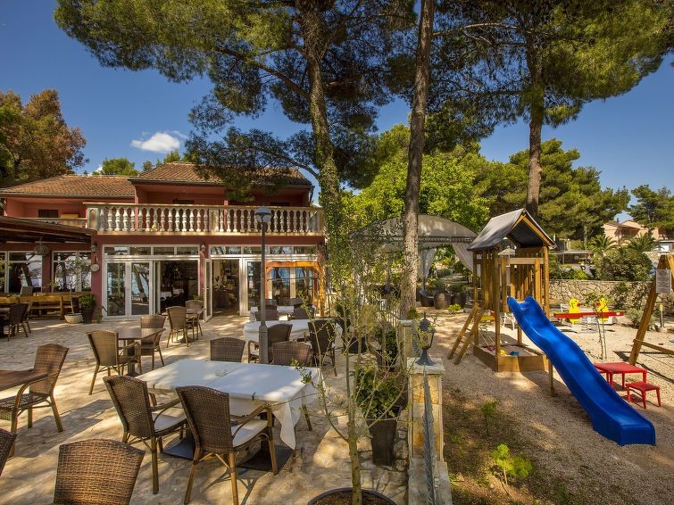 Resort "Matilde Beach Resort", idóneo para niños, agradable, rodeado de árboles. A 300 m del centro de Vodice, lugar soleado, a orillas del mar, en primera linea de playa. Comunitario: terreno (vallado) con árboles, piscina (200 m2, 125 cm de profundidad, Disponible por temporada: 15.May. - 30.Sep.) con escalera interior. Piscina con forma irregular. Ducha/WC en zona de piscina, piscina para niños, parque infantil. En el complejo: recepción, restaurante, bar, internet café, lavandería (extra), alquiler de bicicletas. A disposición: canoa, barco (extra). Desayuno (incluido). Aparcamiento junto a la casa. Tienda 500 m, playa de gravilla, playa de cemento 50 m. Escuela de surf, escuela de vela 50 m, tenis 200 m, minigolf 800 m. A tener en cuenta: discoteca en la proximidad. La foto corresponde a una de las viviendas. Los apartamentos se encuentran a 50-70 m del mar y la playa.. Apartamento de 3 estancias 72 m2, en la planta baja. Salón-comedor con 1 sofá-cama doble (135 cm, 180 cm de longitud), TV satélite y aire acondicionado. Salida a la terraza. 1 dorm. con 1 cama doble (2 x 80 cm, 200 cm de longitud). Salida a la terraza. 1 dorm. con 2 camas (80 cm, 200 cm de longitud). Cocina abierta (2 fogones, horno, hervidor de agua eléctrico, cafetera eléctrica). Ducha/WC. Ningún tipo de calefacción. Terraza 26 m2. Muebles de terraza. El alojamiento dispone de: teléfono. Internet (Wifi, gratis). Plaza de aparcamiento (1 coche).