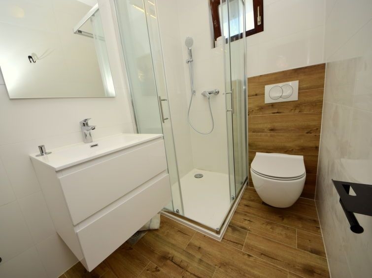 Casa de apartamentos "Rina". En las afueras de la localidad, a 1 km del centro, lugar tranquilo, soleado, elevado, a 500 m del mar. Comunitario: terreno 1'600 m2, jardín con plantas y árboles, piscina rectangular (15 x 6 m, 125 - 135 cm de profundidad, Disponible por temporada: 13.May. - 07.Oct.) con escalera interior. Ducha exterior, terraza-jardín, barbacoa, parque infantil (tobogán, columpio). En el inmueble: acceso a internet, lavadora (uso comunitario, extra). Aparcamiento junto a la casa. Tienda 500 m, restaurante 1 km, playa de gravilla, playa de piedras 500 m. A tener en cuenta: Se pueden reservar alojamientos adicionales.