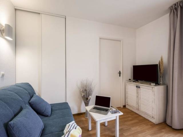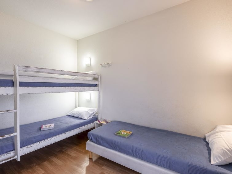 Residencia "Les Alcyons". 136 apartamentos en la residencia. A 800 m del centro de Le Verdon sur Mer, a 6 km del centro de Soulac sur Mer, a 34 km del centro de Lesparre, a 1.2 km del mar, a 1.2 km de la playa. Comunitario: terreno 1 ha (vallado), piscina climatizada (15 x 10 m, 150 cm de profundidad, Disponible por temporada: 15.May. - 30.Sep.) con escalera interior. WC en zona de piscina, piscina para niños, ducha exterior, tenis de mesa, petanca, voleibol playa, terraza, parque infantil. En el complejo: recepción, sala de descanso, futbolín, tienda, alquiler de bicicletas. Aparcamiento. Tienda 100 m, supermercado 600 m, panadería 100 m, playa de arena "La Chambrette (estuaire Gironde)" 1.2 km. Puerto deportivo 2 km, caminos para bicicletas 200 m. Atracciones en los alrededores: Plage Océane Saint Nicolas 3 km, Phare de Cordouan, Royan 11 km, Lacanau 70 km, Bordeaux 95 km. A tener en cuenta: animación en la temporada. Residencia con puertas de cierre eléctrico. La foto corresponde a una de las viviendas. "Les Alcyons T3", apartamento de 3 estancias 42 m2. Vivienda adecuada para 3 adultos + 3 niños. Con mobiliario funcional: salón-dormitorio con 1 sofá-cama (140 cm, 190 cm de longitud), mesa de comedor y TV (pantalla plana). Salida al balcón, a la terraza. 1 dorm. con 1 cama de matrimonio (140 cm, 190 cm de longitud). 1 dorm. con 1 cama (80 cm, 190 cm de longitud), 1 x 2 literas (80 cm, 190 cm de longitud). Rincón-dormitorio con 1 cama (80 cm, 190 cm de longitud). Rincón-cocina (lavavajillas, 4 placas de vitrocerámica, hervidor de agua eléctrico, microondas, cafetera eléctrica). Baño/WC. Calefacción eléctrica. Balcón o terraza cubierta. Muebles de terraza. El alojamiento dispone de: trona, cuna. Internet (Wifi, gratis). A tener en cuenta: apartamento para no fumadores. Permitido máximo 1 mascota / perro. Detector de humo.