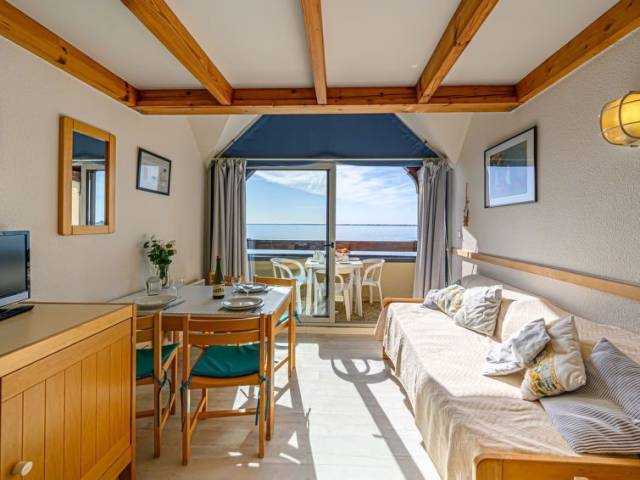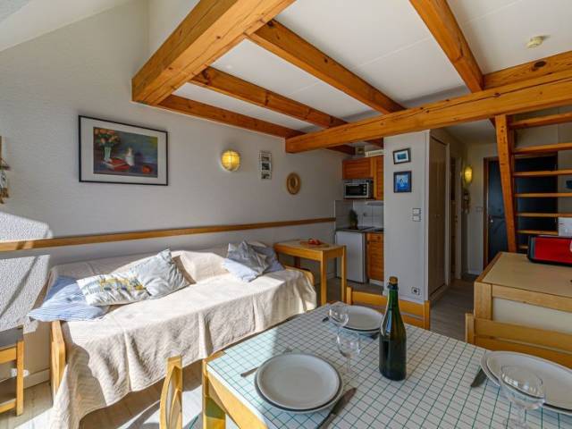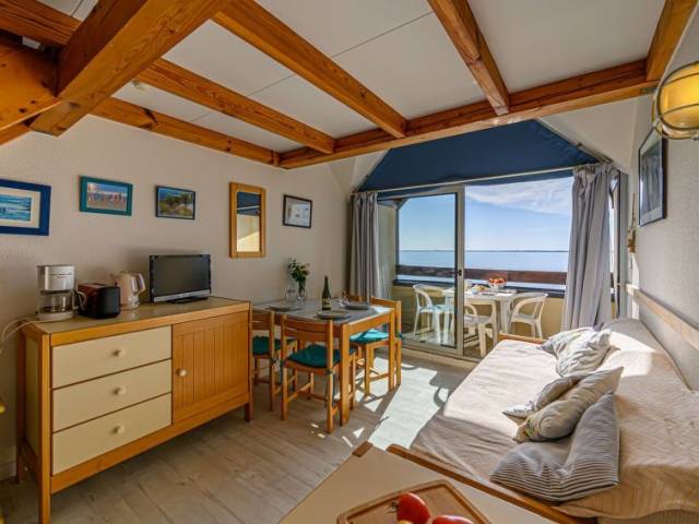 Apartamento de 2 estancias 32 m2 en 2 plantas en el 1° piso. Salón-comedor con 1 cama (80 cm, 190 cm de longitud), TV (pantalla plana). Rincón-cocina (horno pequeño, 2 placas de vitrocerámica, tostadora, hervidor de agua eléctrico, microondas, cafetera eléctrica). Ducha/WC. Calefacción eléctrica. Planta superior: 1 dorm., pequeño con 2 camas (90 cm, 190 cm de longitud). Terraza 4 m2, orientación sur. Muebles de terraza. Vista panorámica muy bonita al mar. El alojamiento dispone de: plancha. Internet (Wifi, gratis). A tener en cuenta: 1 mascota / perro. Detector de humo. Oferta de un particular según el art. 155, IV del CGI.