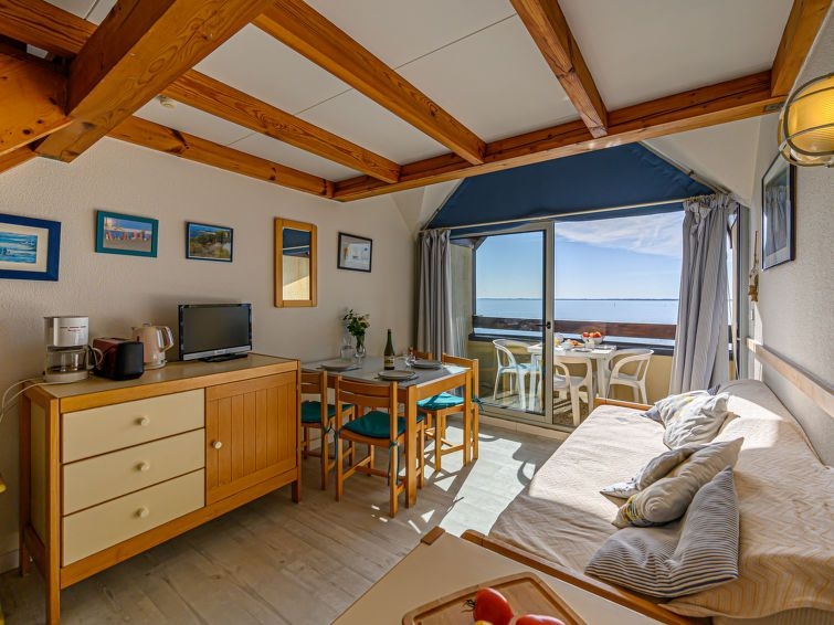 Casa de apartamentos "Plein Océan", de 2 plantas. En la localidad, a 1.5 km del centro de Carnac Plage, lugar tranquilo, soleado en un barrio residencial, a 10 m del mar, a 50 m de la playa, acceso directo a la playa. Aparcamiento (número limitado), posibilidad de aparcamiento en la calle. Supermercado 1 km, restaurante 1 km, a 15 minutos del centro andando, playa de arena "Grande plage de Carnac" 50 m, centro de buceo 2 km, piscina termal "Thalassothérapie Thalazur" 1.7 km. Puerto deportivo 4 km, campo de golf (18 hoyos) 10 km, escuela de vela 1.5 km, tenis 500 m. Atracciones en los alrededores: Les Alignements de Carnac 2 km, La Trinité sur Mer 4 km, Presqu'île de Quiberon 20 km, Vannes 35 km, Lorient 45 km, Belle île en Mer, Houat, Hoedic. Zona de senderismo Le Golfe du Morbihan. Vivienda adecuada para 3 adultos.