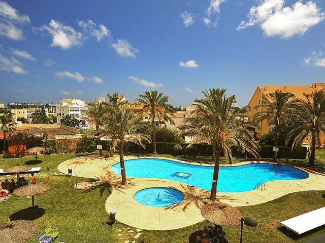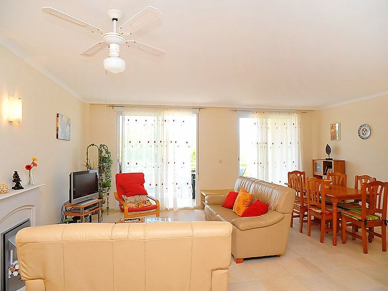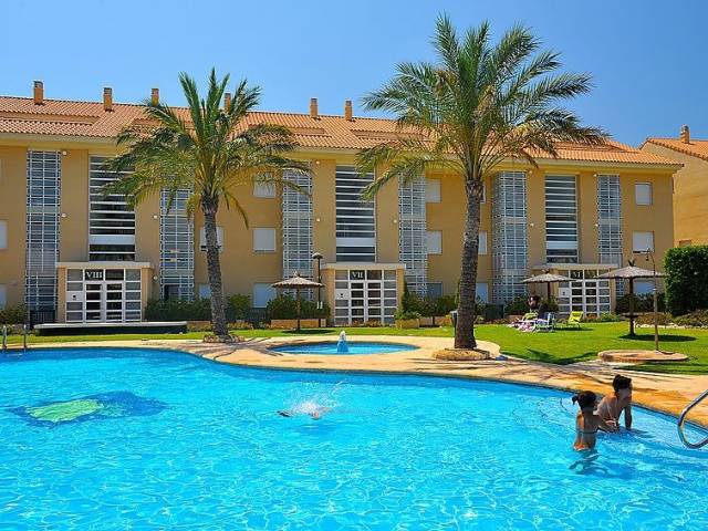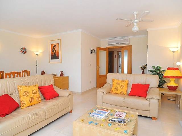 Complejo vacacional "Golden Beach", bonito de 3 plantas. Lugar céntrico, a 500 m del mar. Comunitario: jardín grande, bonito, cuidado (vallado) con césped y árboles, terreno con hierba, piscina (Disponible por temporada: 01.Ene. - 31.Dic.) con escalera interior. Piscina para niños, ducha exterior. Supermercado, restaurante 100 m, playa de arena "Arenal" 500 m. Grupos de jóvenes sólo bajo petición. Apartamento de 4 estancias 110 m2 en 2 plantas en el 2° piso. Con mobiliario funcional: salón-comedor con TV satélite, TV digital, equipo de música, DVD, aire acondicionado y ventilador. Salida al balcón. 1 dorm. con 2 camas y aire acondicionado. Cocina (horno, lavavajillas, 3 placas de vitrocerámica, microondas, congelador, cafetera eléctrica). Baño/bidet/WC. Aire acondicionado, aire caliente. Planta superior: 1 dorm. con 1 cama de matrimonio (180 cm, 200 cm de longitud), baño/bidet/WC y aire acondicionado. Salida a la terraza. 1 dorm. con 2 camas y aire acondicionado. Salida a la terraza. Ducha/WC. 2 terrazas 21 m2. Muebles de terraza. Vista a las montañas. El alojamiento dispone de: lavadora. Internet (Wifi, gratis). Garaje n. 34. AT-431151-A