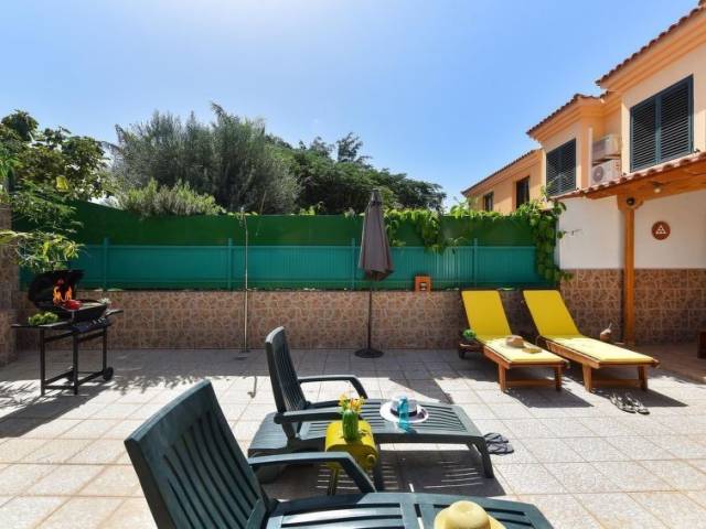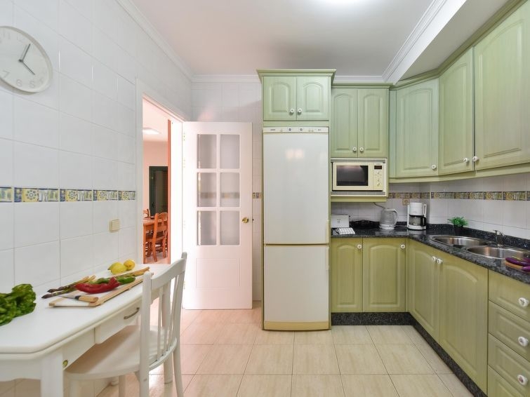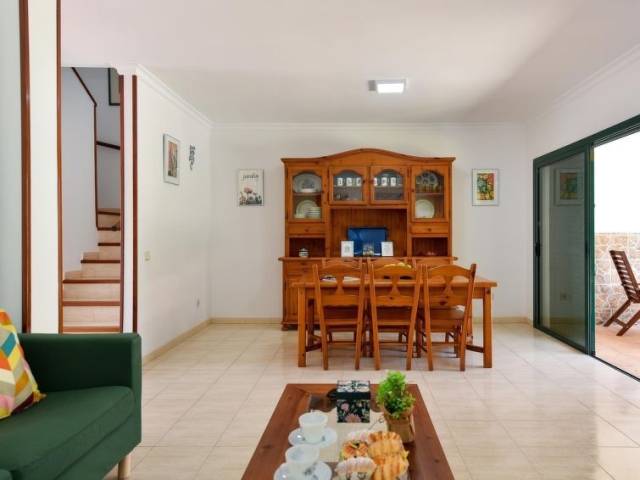 "Bungalow Sonnenland Los Tinos II 45", apartamento de 3 estancias 120 m2. Con mobiliario confortable y agradable: salón-comedor con mesa de comedor y TV digital. Salida a la terraza. (horno, 3 placas de vitrocerámica, hervidor de agua eléctrico, microondas, congelador, cafetera eléctrica) con mesa de comedor. WC separado. Planta superior: 1 dorm. con 1 cama de matrimonio. 1 dorm. con 2 camas. Baño/WC. Terraza. Muebles de terraza, barbacoa, tumbonas. El alojamiento dispone de: lavadora, caja fuerte, plancha, trona, cuna hasta 2 años, secador de pelo. Internet (Wifi, gratis). Plaza de aparcamiento (1 coche). A tener en cuenta: apartamento para no fumadores. Permitido máximo 1 mascota / perro. VV-35-1-0018173