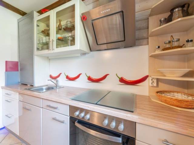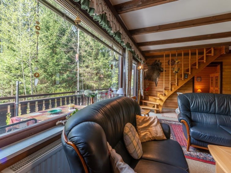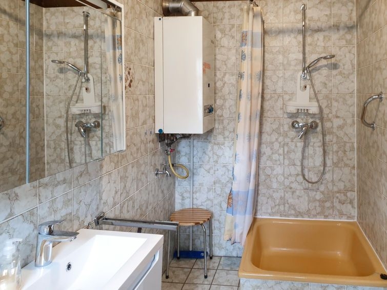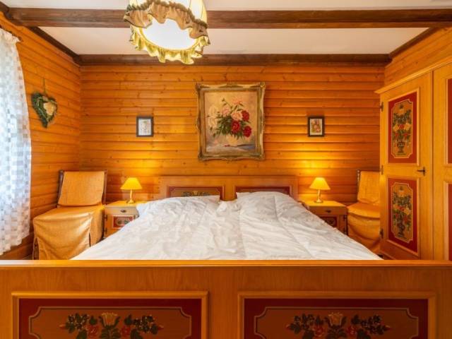 Apartamento de 3 estancias 75 m2, en planta superior. Con mobiliario agradable y con mucha madera: salón 35 m2 con chimenea (sólo con función decorativa), TV satélite (pantalla plana), CD, equipo de música y DVD. Salida al balcón. 1 dorm. 13 m2 con 1 cama doble (180 cm, 200 cm de longitud), 1 plegatín (90 cm, 190 cm de longitud). 1 dorm. 9 m2 con 2 camas (90 cm, 190 cm de longitud). Cocina abierta 9 m2 (horno, 4 placas de vitrocerámica, tostadora, hervidor de agua eléctrico, microondas, cafetera eléctrica) con rincón-comedor. Ducha/WC. Calefacción de gas. Balcón grande 20 m2. Muebles de balcón. Vista bonita a las montañas. El alojamiento dispone de: leña (extra). A tener en cuenta: apartamento para no fumadores. Permitido máximo 1 mascota / perro. Entrada privada, detector de humo, extintores.