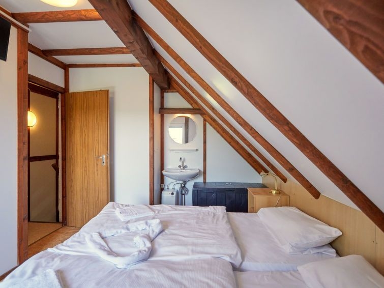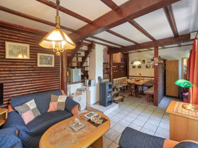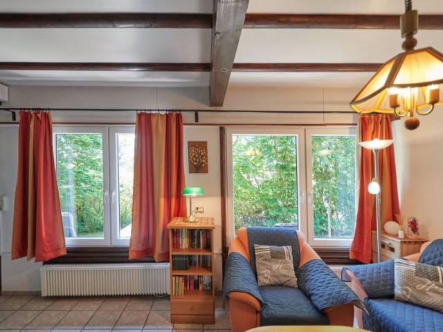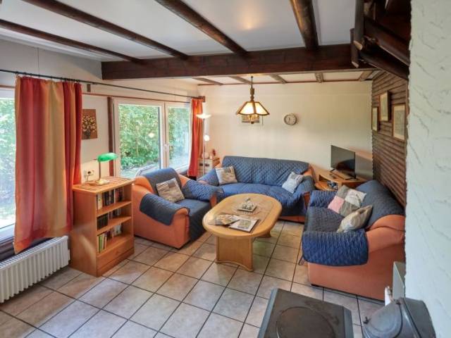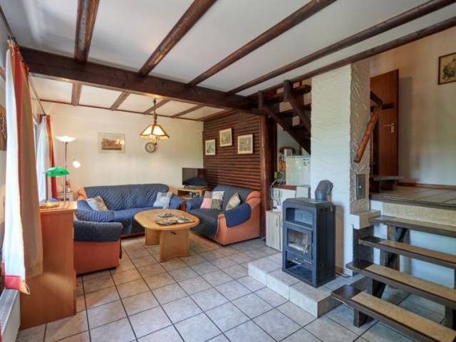 "Am Sternberg 105", casa 3 estancias 65 m2 en 2 plantas, en la planta baja. Con mobiliario agradable y con mucha madera: salón-comedor 25 m2 con chiminea nórdica y TV cable (pantalla plana), estufa de lena. Salida a la terraza, a la terraza-jardín. 1 dorm. 12 m2 con 1 cama doble (180 cm, 200 cm de longitud), lavabo y WC separado. Pequeña cocina abierta 8 m2 (4 fogones, horno, hervidor de agua eléctrico, microondas, congelador, cafetera eléctrica). Ducha/WC. Planta superior: (escalera de caracol) 1 dorm. 11 m2, abuhardillado con 1 cama doble (180 cm, 200 cm de longitud), TV cable (pantalla plana). Salida al balcón. Calefacción eléctrica. Balcón pequeño 5 m2, terraza grande 20 m2 parcialmente cubierta, terraza-jardín, césped 200 m2. Muebles de terraza, muebles de balcón, barbacoa (portátil), tumbonas (3). El alojamiento dispone de: leña (extra). Internet (Wifi, gratis). A tener en cuenta: casa para no fumadores. Detector de humo, extintores.
